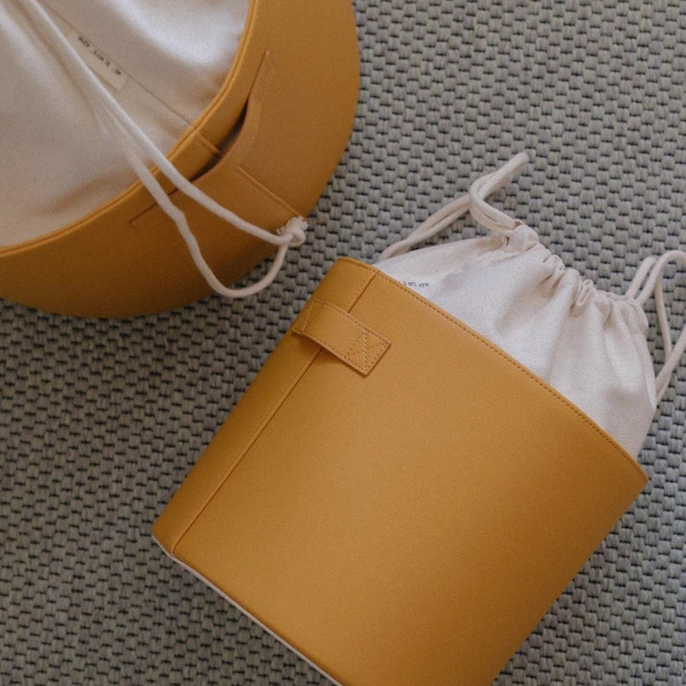 은은한 민자 가죽과 네츄럴 컬러의 원단 콤비에 스티치 컬러 포인트로