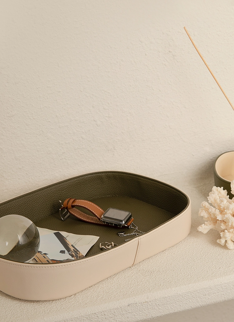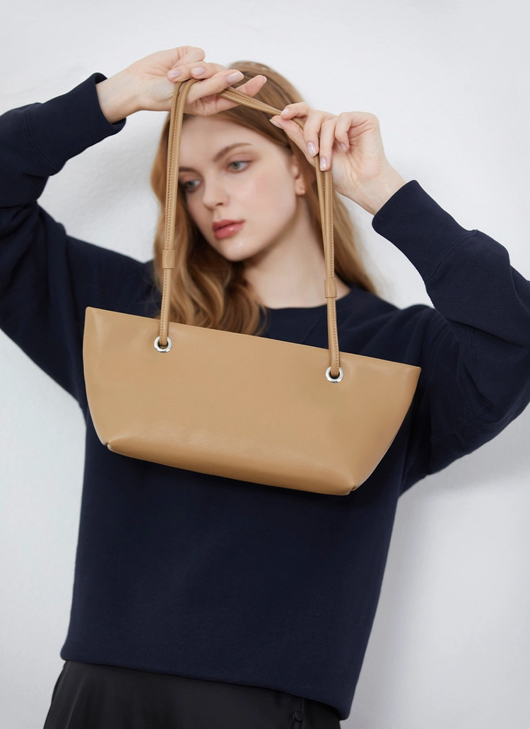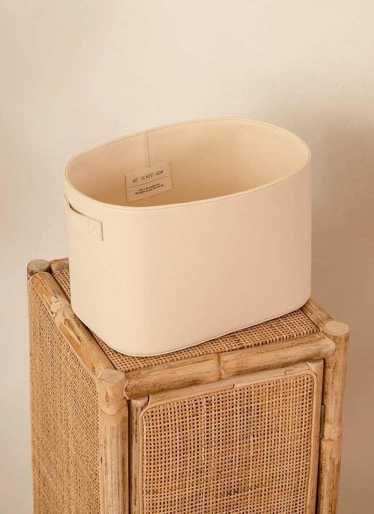 은은한 민자 가죽과 네츄럴 컬러의 원단 콤비에