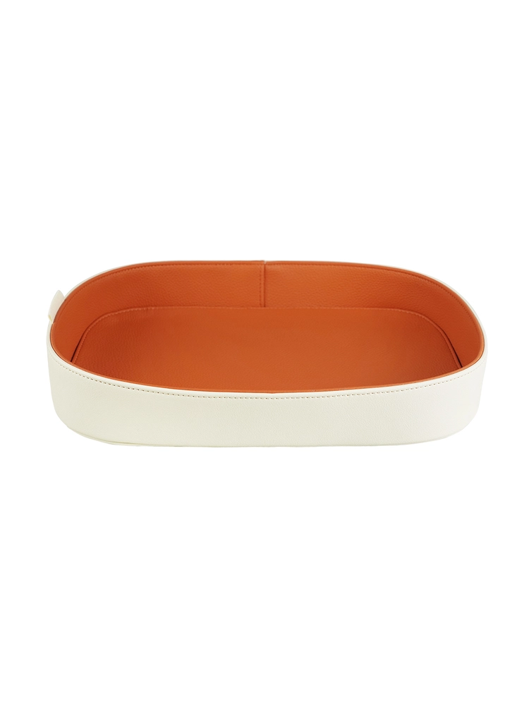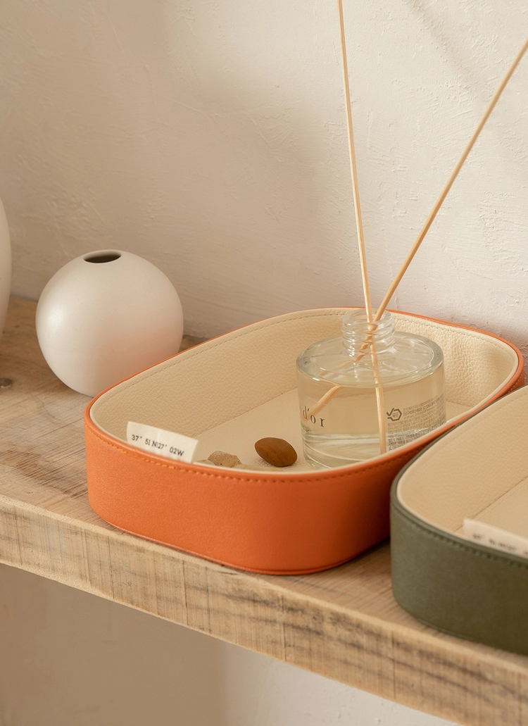 은은한 민자 가죽과 네츄럴 컬러의 원단 콤비에 스티치 컬러 포인트로