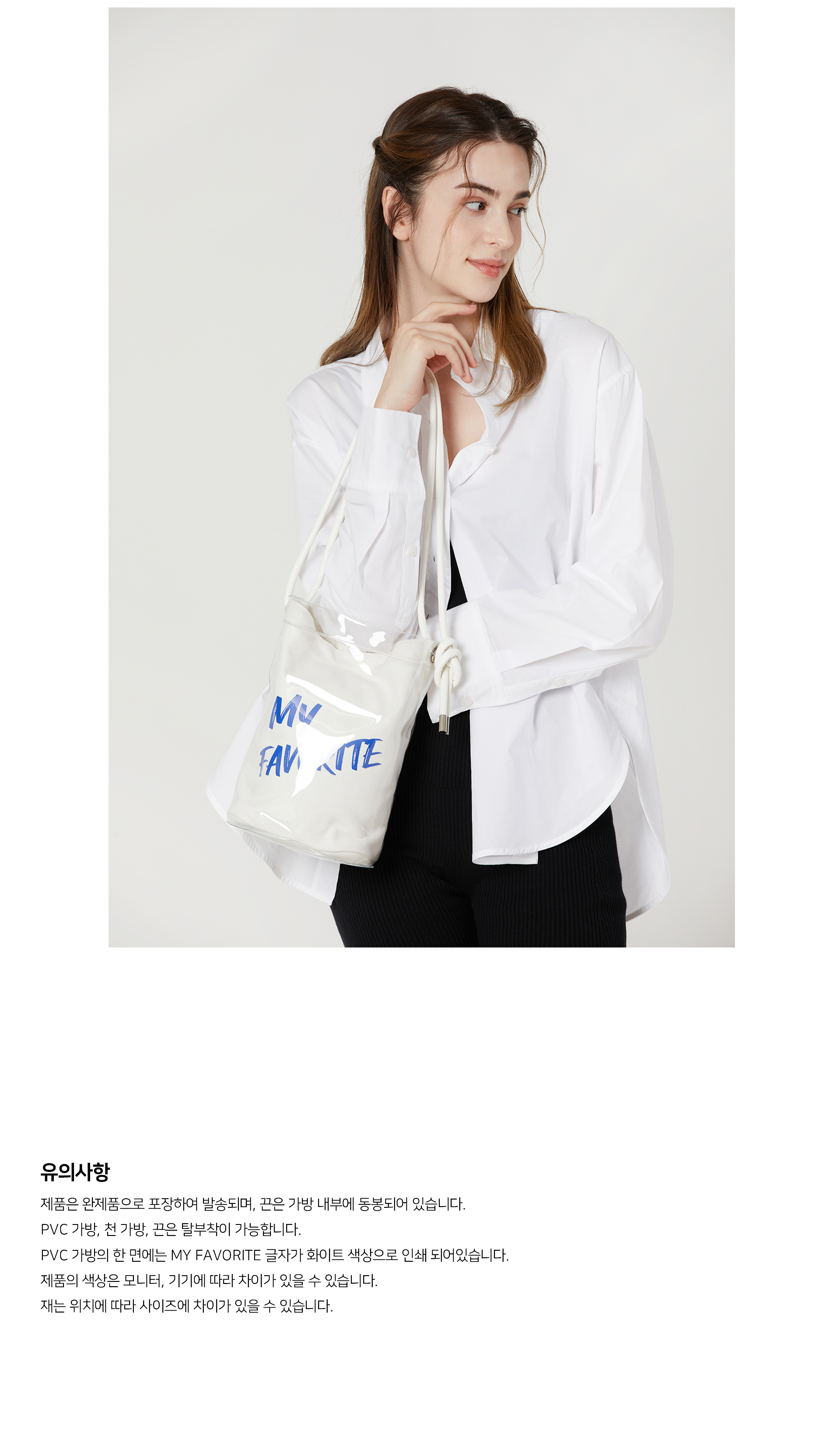 내부 천 가방과 끈을 부착하여 사계절 내내 사용 가능한 만능 크로스백이에요. PVC 소재로 제작되어 칠링백, 바캉스백으로 사용할 수 있어요. |