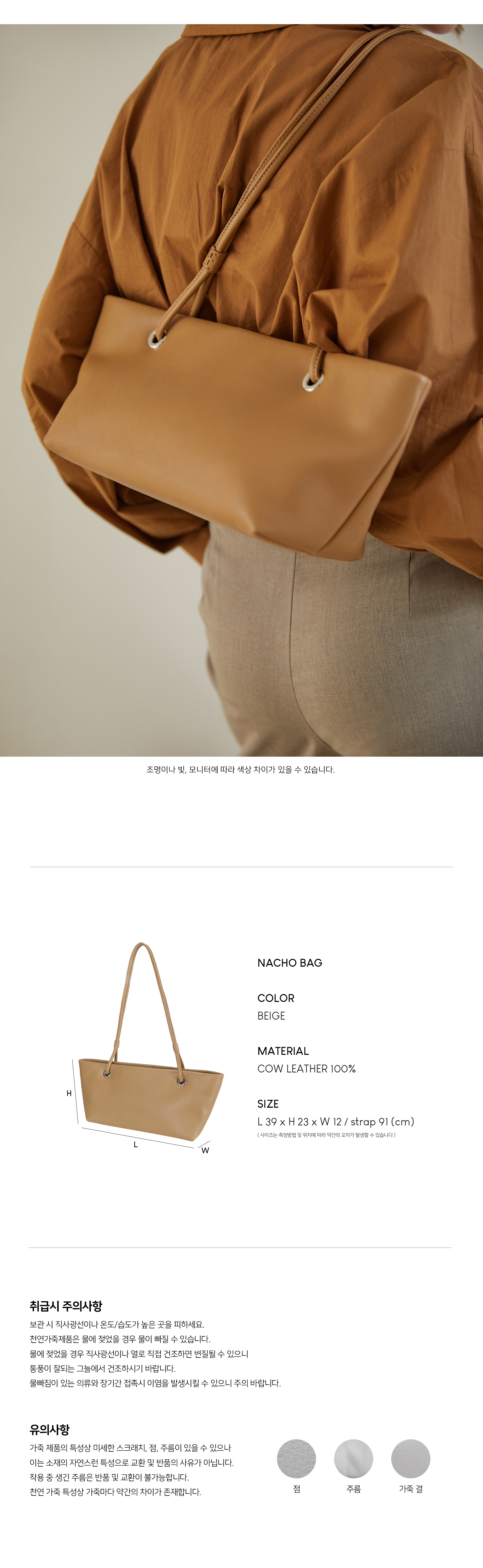 | SIZE | L 39 x H 23 x W 12 / strap 91 (cm) |